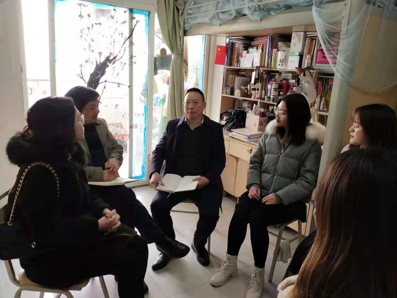 12月5日下午,公司党委常委、副董事长谭明术,党委委员、公司党总支书记甘长银来到对口联系寝室桂花苑5舍608、8舍323,与同学们亲切座谈。