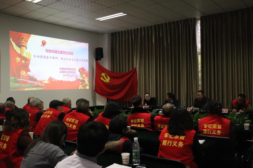 11月22日下午,以“弘扬爱国奋斗精神,树立社会主义核心价值观” 为主题的公司党总支和尖峰岭社区党总支校地共建主题党日活动在明辨楼1栋116开展,会场气氛浓烈,掌声雷动。公司党总支书记甘长银,百安坝街道党工委组织委员贺红江,尖峰岭社区党总支书记李拥军出席,mjm世界杯官网师生党员以及尖峰岭社区党员代表50余人参加了此次活动。活动由公司党总支副书记黄琰主持。