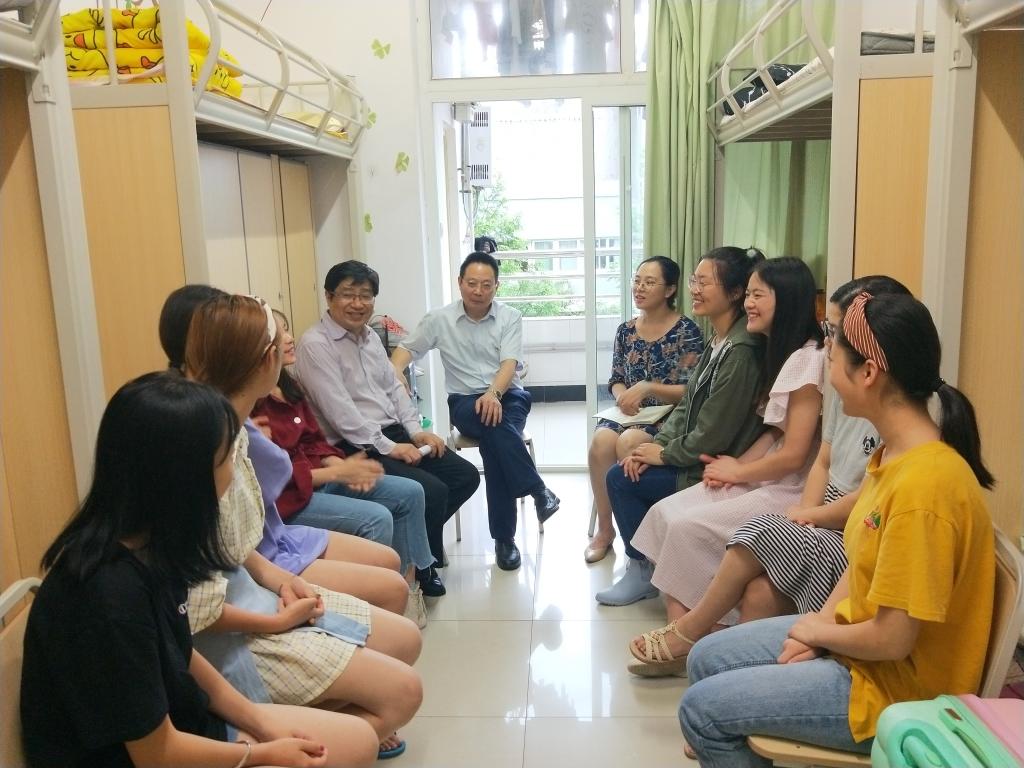 6月28日下午4:00,谭董事长、甘书记又来到桂花苑的5舍608寝室和8舍323寝室,通过走访座谈与员工开展深入地交流,全面了解员工思想动态,引领员工成长成才。在会谈中,谭董事长亲切询问了寝室每位同学的学习及生活状况,详细了解同学们在生活中遇到的困难,并结合员工所学专业提出建议,鼓励大家要好好读书,在关键时期做好人生规划。同学们也畅所欲言,充分表达了对公司专任教师的认可、对公司后勤服务的满意。同时对公司教学、寝室设施等方面提出询问和建议。针对同学们的问题,谭董事长做出一一解答,并从自身谈起,与同学们分享他的学习生活经验,鼓励同学们在提升专业能力的同时要培养有益身心的兴趣爱好,全方位提升自我,勇于实践,度过充实且有质量的大学时光,让人生更富有意义。甘书记给予同学们几点建议:专业学习必须下一番功夫,要熟能生巧并举一反三;要正确认识和评价自我,注重培养核心竞争力,善于发现自己的优点和长处,去牢牢把握人生机遇,在未来大展宏图;寝室要营造积极向上的文化和氛围,室友之间要互相激励、互相促进,一起向着更好的方向发展和努力。