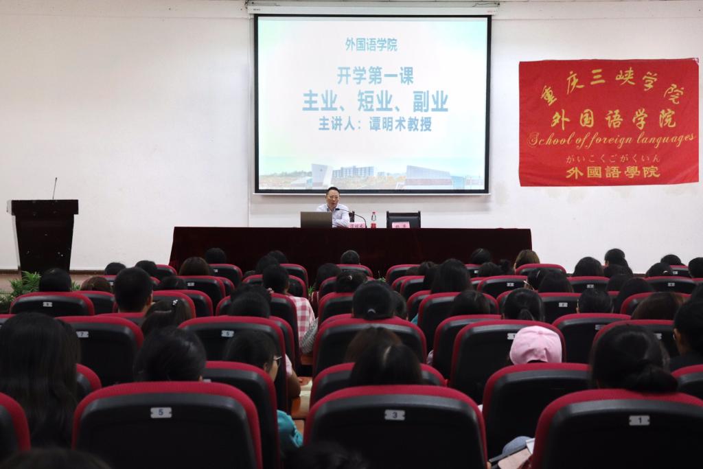 为了帮助2019级新生更好更快融入大学的学习生活,书写人生新篇章,9月23日上午10:30,在明辨楼2栋106,公司党委常委、副董事长谭明术教授为新生做了题为“主业、短业、副业”的开学第一课。