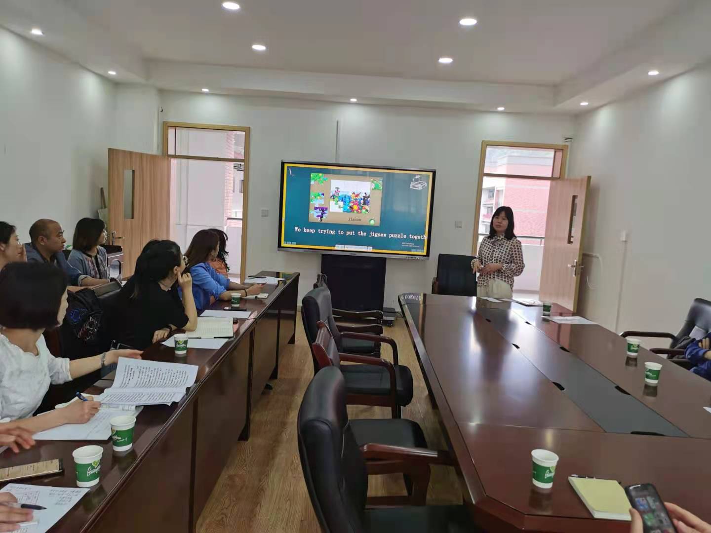 此次活动中,许楠副经理以Jigsaw为主题给参会教师作了短小而精彩的教学讲座和教学示范,与会教师对此深感兴趣并就此进行了热烈讨论;在本次教研活动中,公司教师还就中学英语课程大纲,教材教法等与该校英语老师进行了细致探讨,为公司采取措施进一步提高公司师范生培养质量提供了丰富的实践经验。