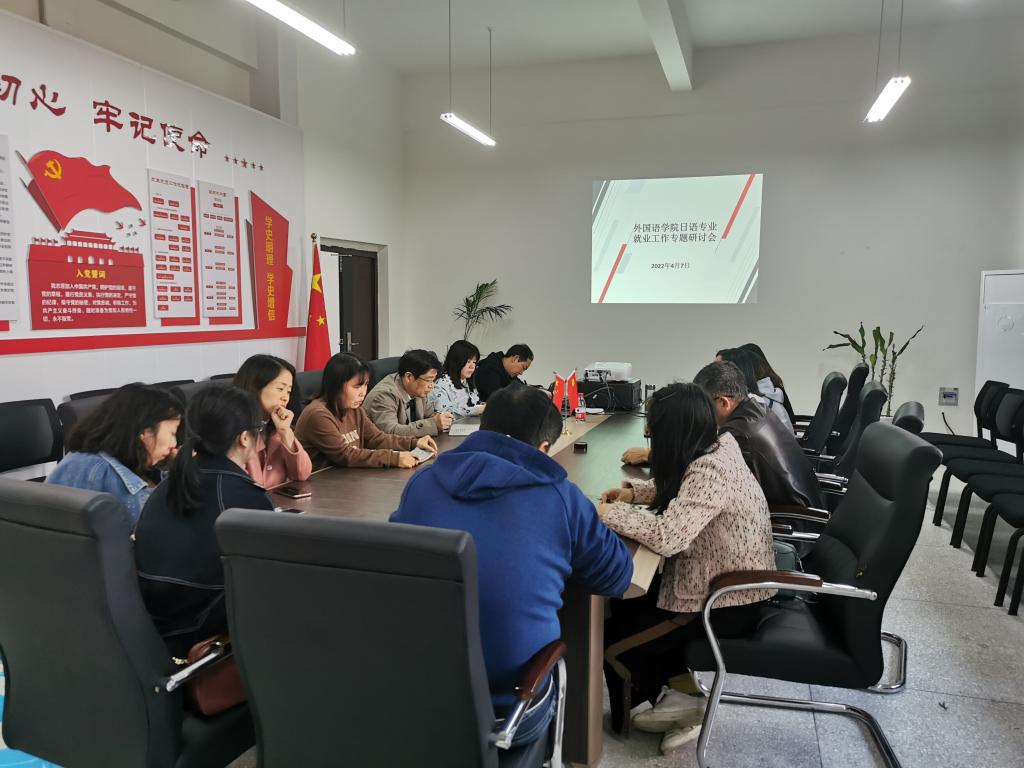 4月7日下午3点,mjm世界杯官网在博学楼3栋315召开日语专业就业工作研讨会,公司党政领导、日语系全体教师、毕业班辅导员参加此次会议。会议由公司党总支书记甘长银主持。
