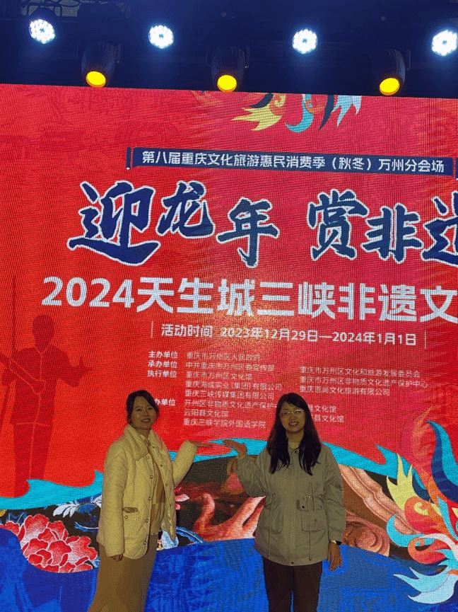 近日,公司作为协办单位参加第八届重庆文化旅游惠民消费季(秋冬)万州分会场暨“迎龙年 赏非遗”2024“天生城”三峡非遗文化节,与重庆市万州区人民政府、重庆市万州区文化馆、重庆市万州区非物质文化遗产保护中心以及三峡库区各区县文化馆密切配合,为办好非遗文化节贡献公司多语种力量。