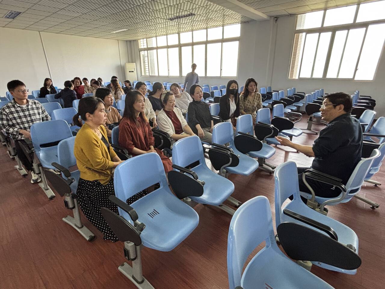 最后,甘长银强调,要深入贯彻中央八项规定精神,推进作风建设常态化长效化,并把学习教育落实落地落细,坚决做到:积极作为,善于作为,敢于担当;加强群众路线,深入师生,了解师生,服务好师生,营造良好的工作和学习氛围;提高办事效率,不搞形式主义,不让师生多头跑多次跑;廉洁奉公,不违规收送礼品礼金,不吃拿卡要.