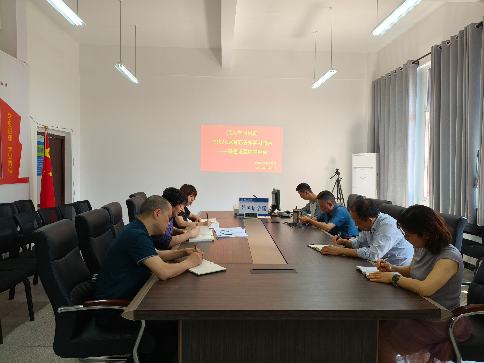 为了深化学习教育,落实查摆问题的集中整治,公司党总支5月20日在博学楼3-315召开了深入贯彻中央八项规定精神学习教育推进会。各位班子成员(总支委员会委员)参会,党总支书记甘长银主持会议。