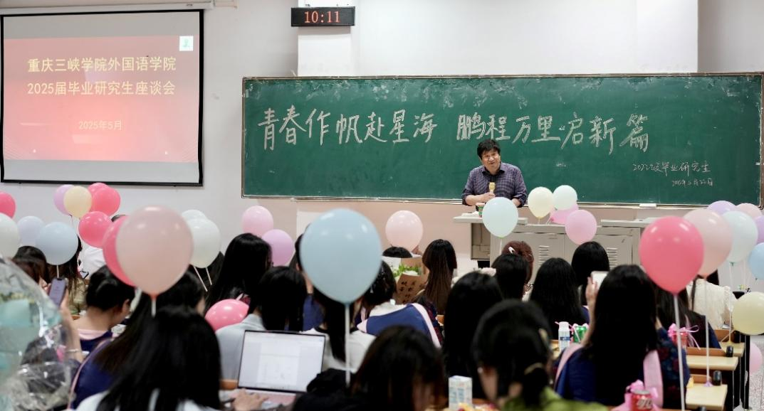 上午10时,座谈会在温馨的氛围中拉开帷幕。教室内“青春作帆赴星海,鹏程万里启新篇”的寄语格外醒目,五彩气球装点会场,为离别时刻增添了一份暖意。