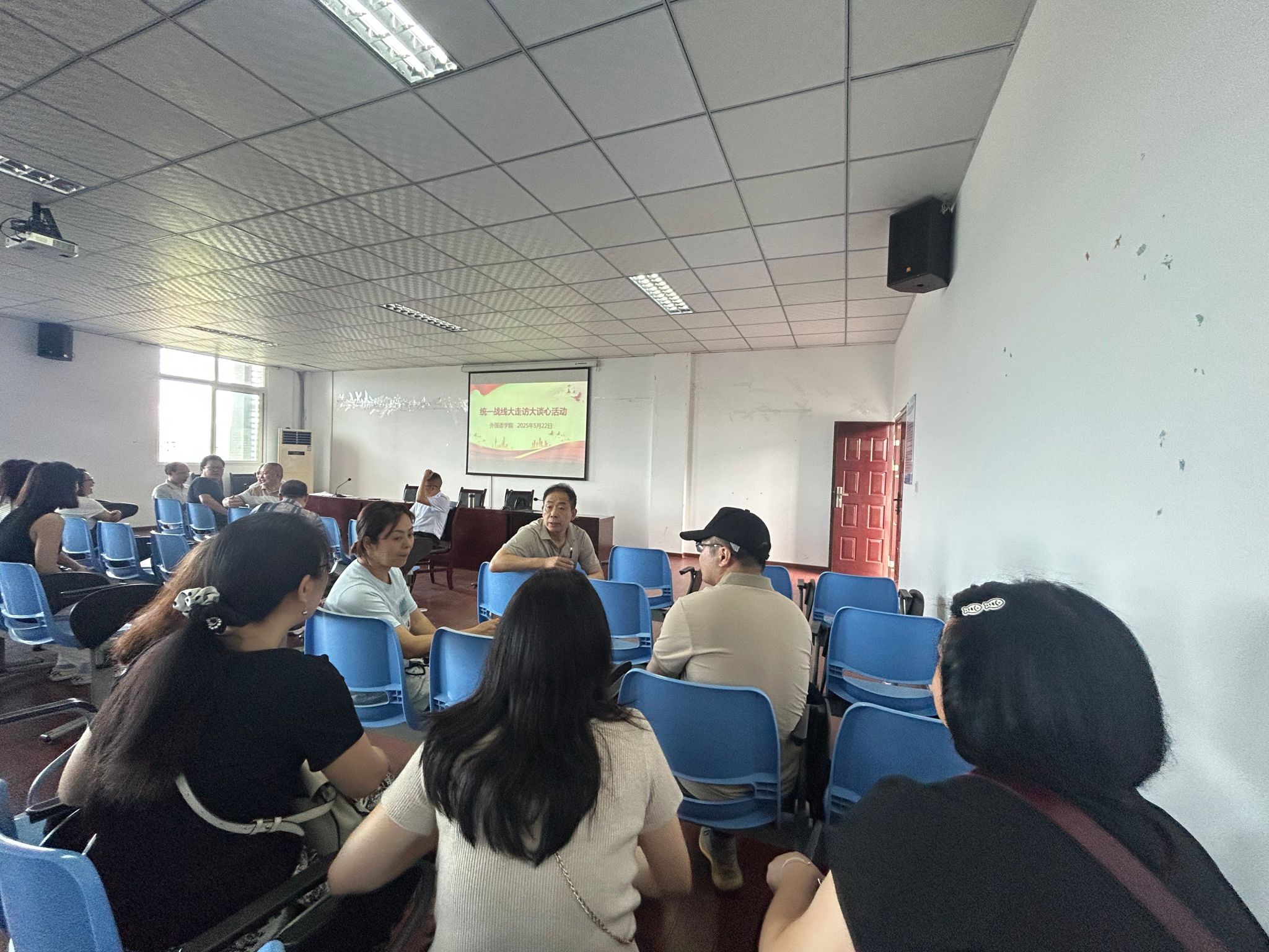 为深入学习贯彻党的统战理论政策,深入了解党外知识分子思想动态,进一步增强公司凝聚力与向心力, 2025年5月22日,mjm世界杯官网在明辨1教604教室召开统战理论政策宣讲会,并开展了“大走访、大谈心”活动。此次会议由公司党总支书记甘长银主持,mjm世界杯官网全体教师参加。