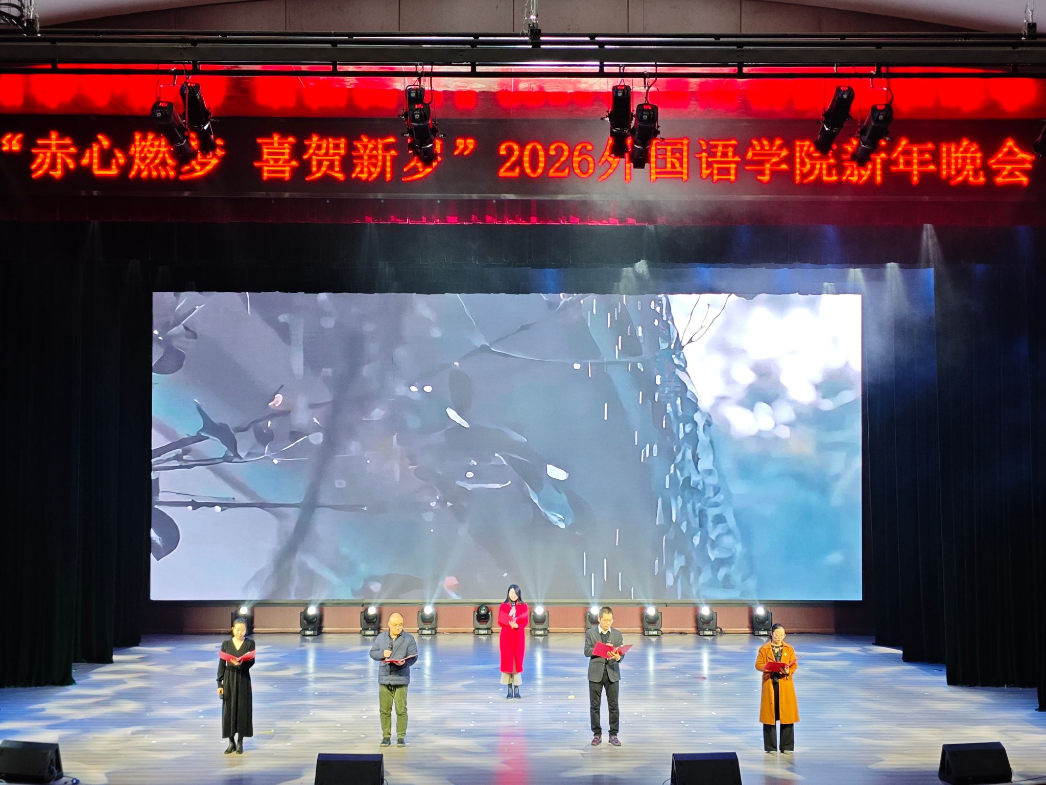 2025年12月16日晚,mjm世界杯官网“赤心燃梦 喜贺新岁”新年晚会在图书馆报告厅举行。公司领导、师生欢聚一堂,共同迎接2026年的到来。
