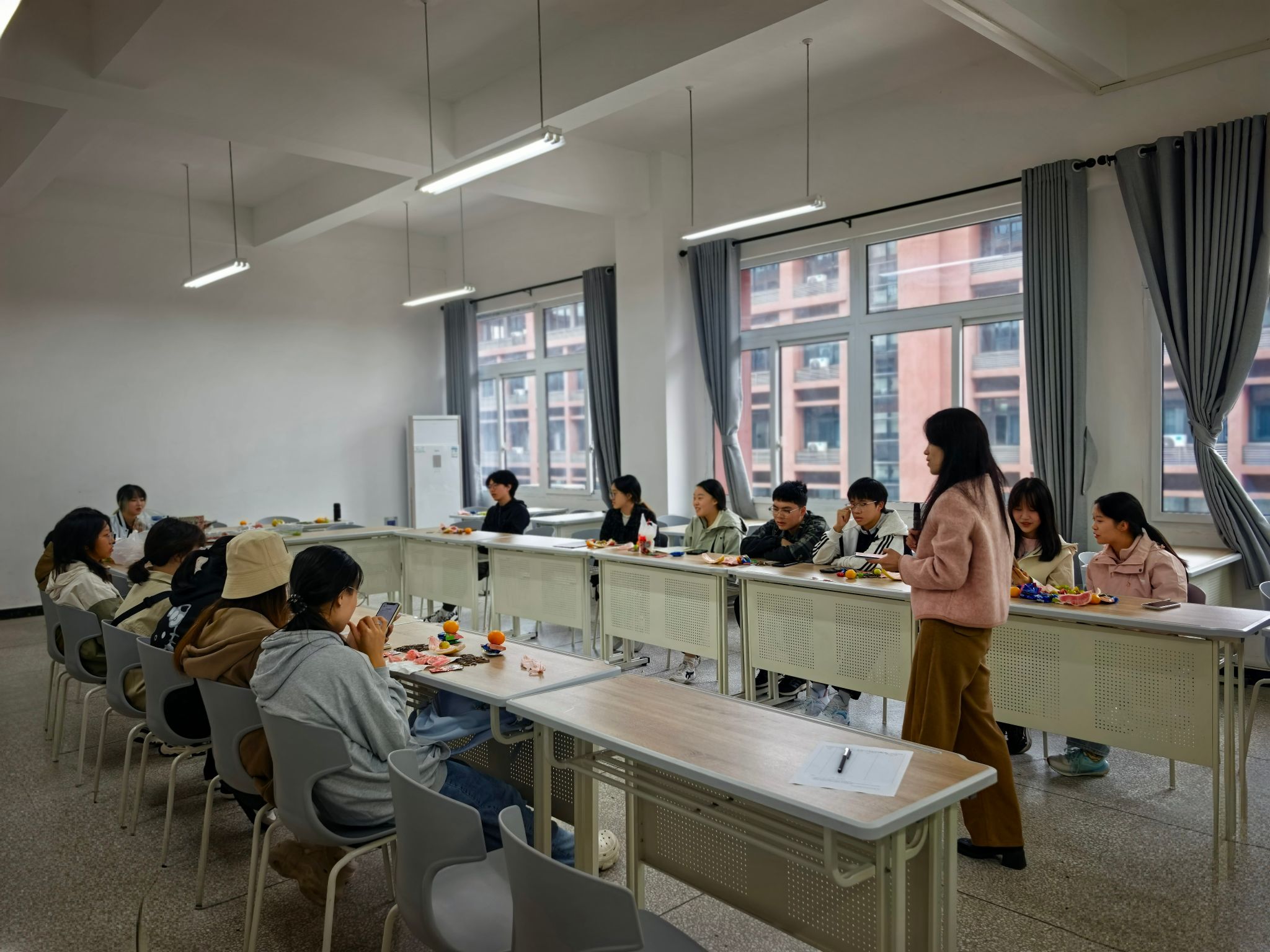 活动伊始,陶老师组织同学们通过“分组猜拳”确定演唱顺序,现场气氛轻松活跃。在每首歌曲演唱后,陶老师结合歌词内容解析其中蕴含的文化内涵,如在《Lemon》中解读“物哀”美学,帮助员工在音乐中加深对日语文化的理解。