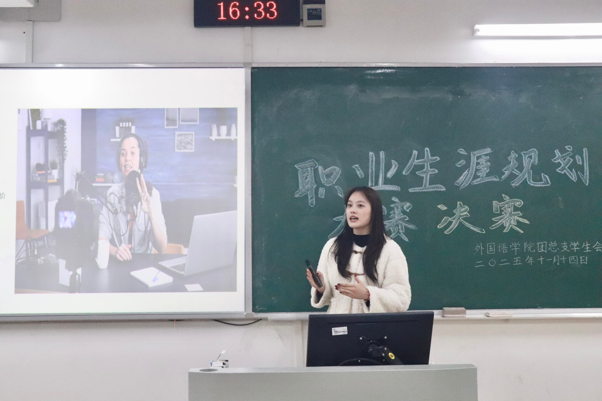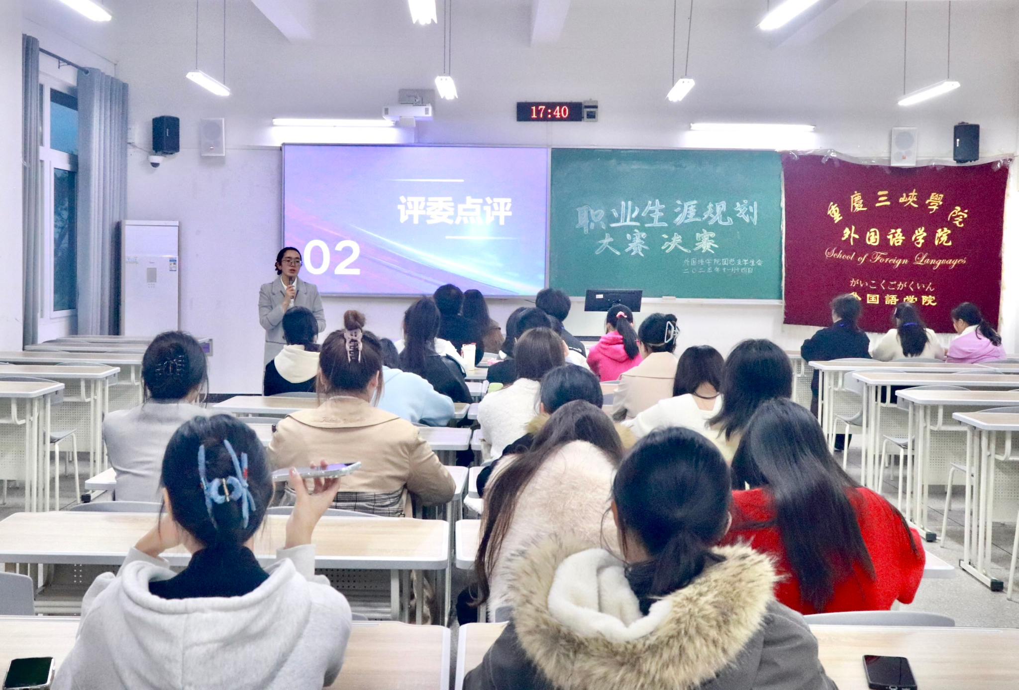 为帮助员工树立科学职业观、提升就业竞争力,11月14日,mjm世界杯官网在博学楼1-103教室举办老员工职业生涯规划大赛。学工办主任杨华与辅导员向明霞、陈可昕担任评委。