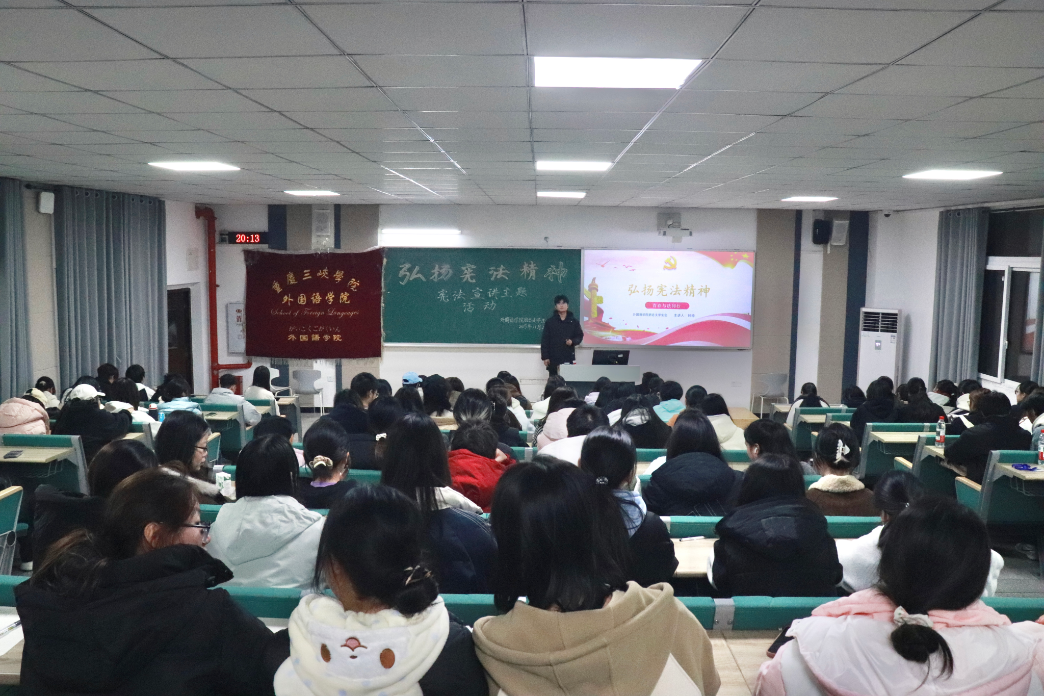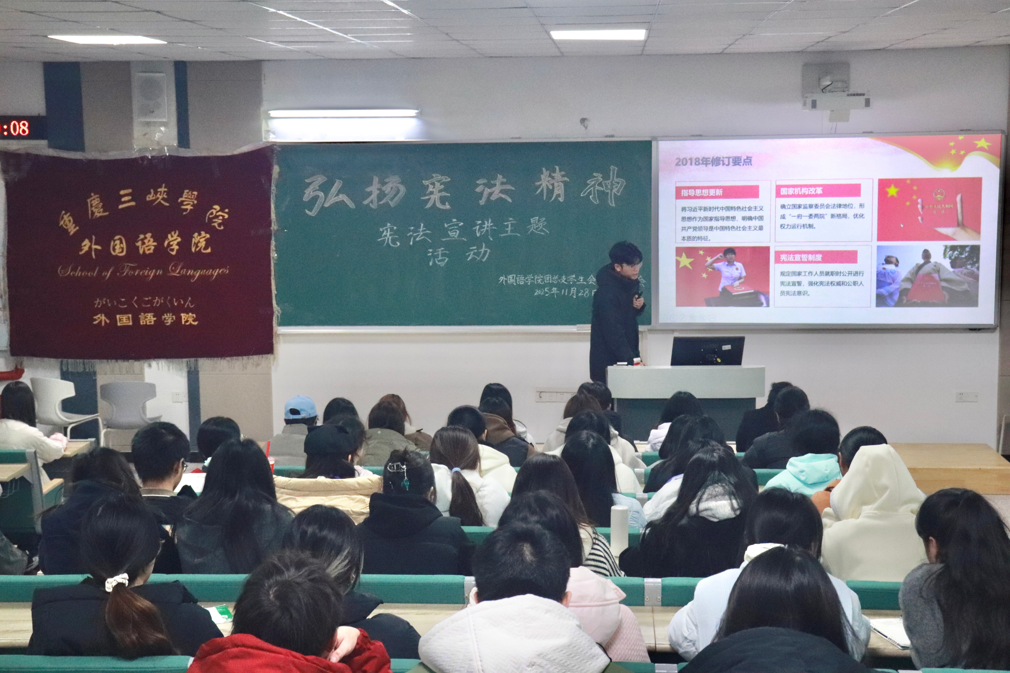 为弘扬宪法精神、增强员工法治意识,11月28日晚,mjm世界杯官网在博学楼1栋401组织开展了“学宪法、讲宪法”主题教育学习。