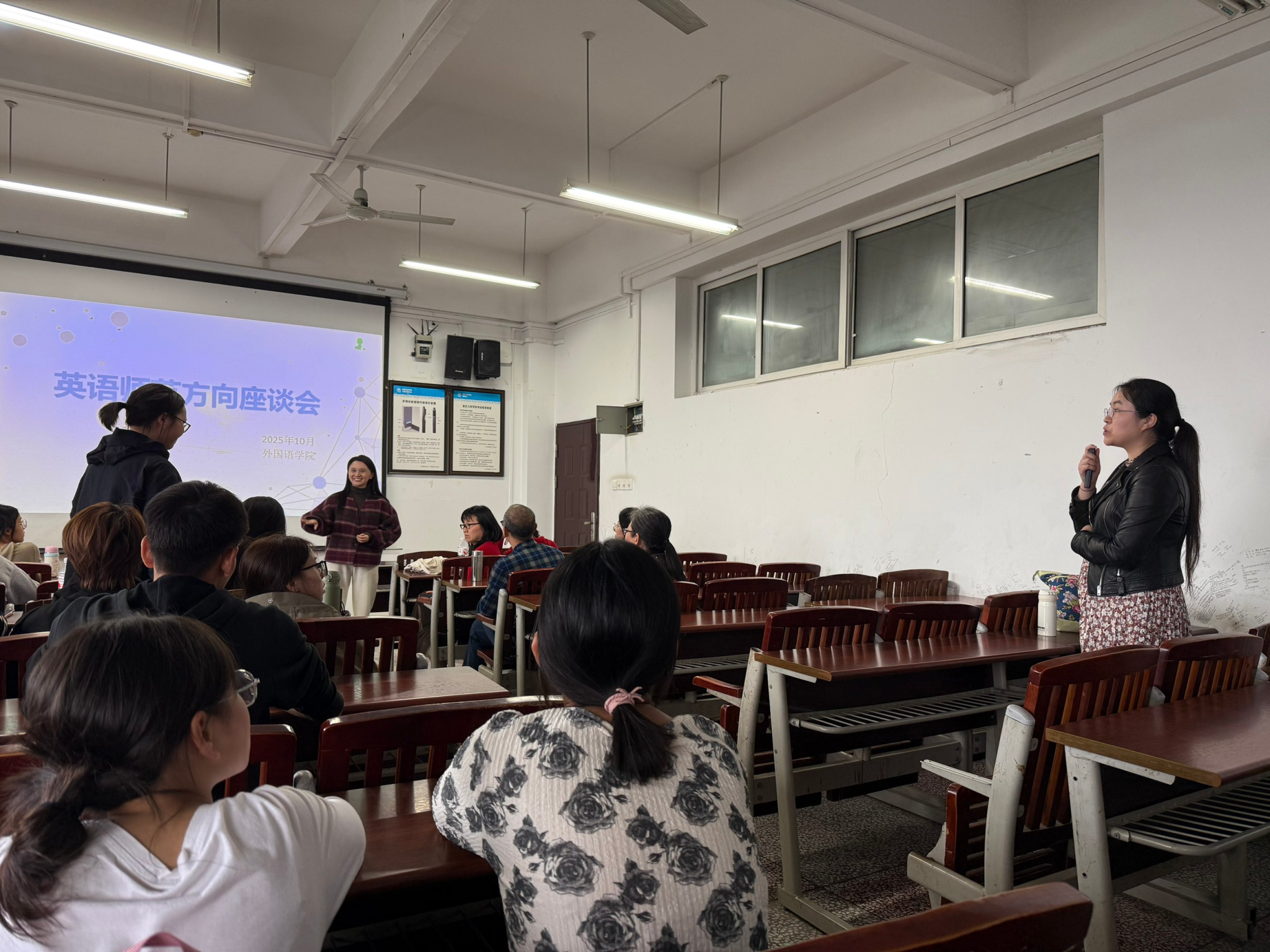 2025年10月30日,mjm世界杯官网于明辨楼1栋403举行英语师范专业员工座谈会。座谈会由刘先林老师主持,刘娜、戴倩倩、金良友、覃靓等任课教师出席,与来自25级、24级、23级三个年级的员工代表进行了交流。