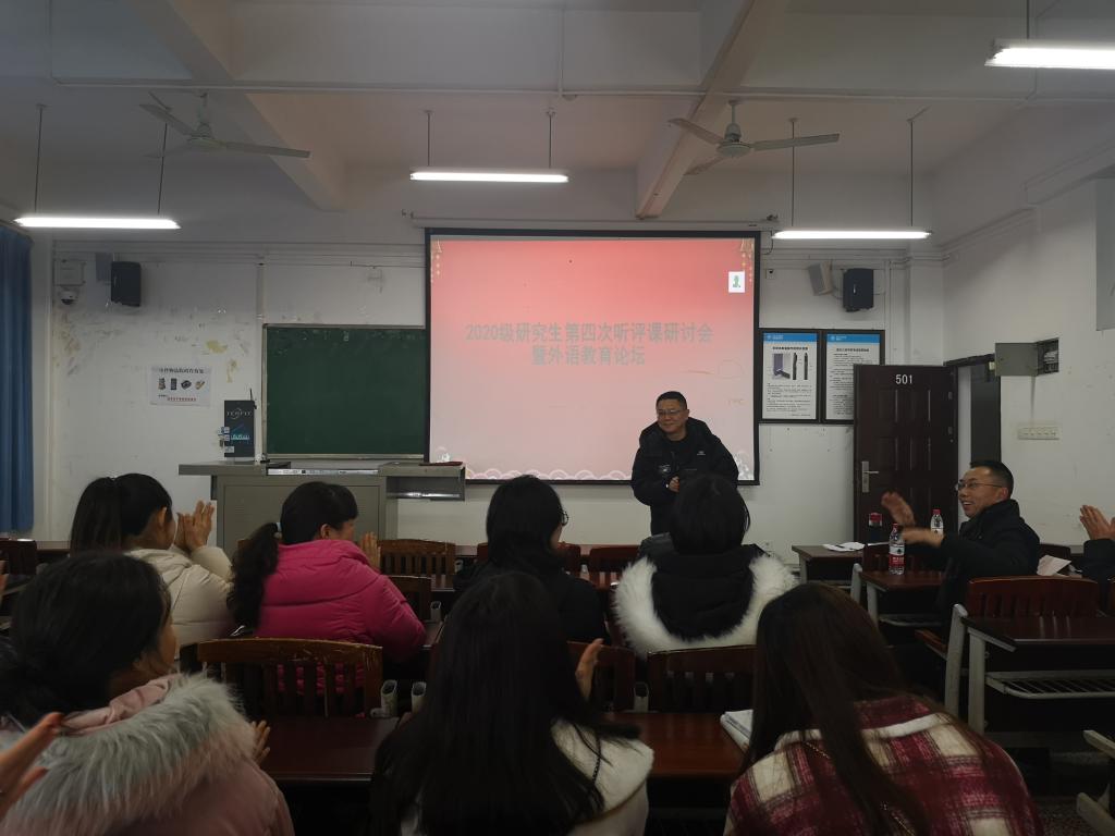 为培养员工自身文化素养,提高科研教学能力,mjm世界杯官网于2020年12月24日在明辨楼一栋604及501分两组举办了2020级研究生第四次听评课研讨会暨外语教育论坛。其中参会人员有2020级全体研究生、校内外导师、任课教师以及外语教育论坛负责人。