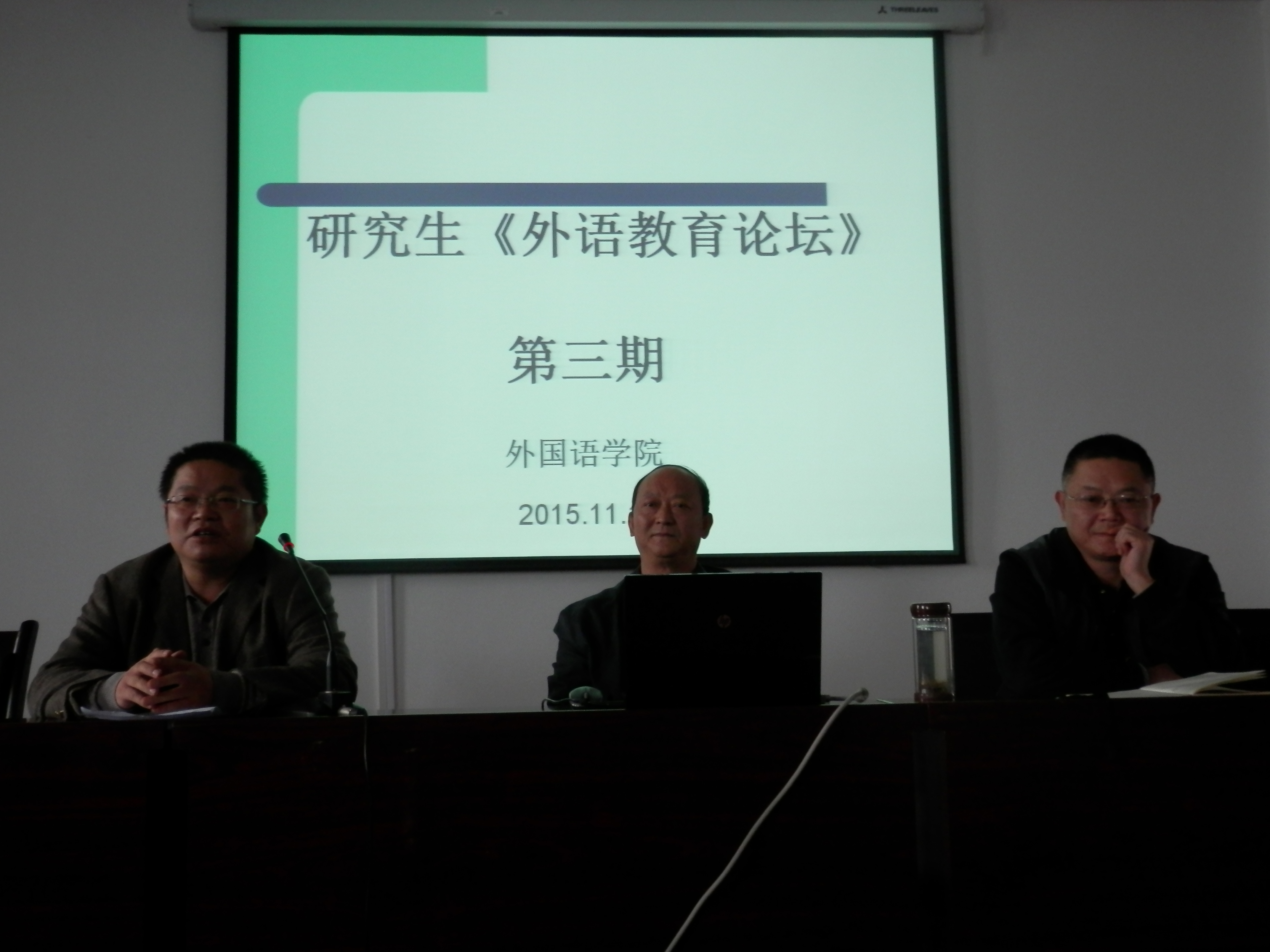 2015年11月12日下午2点30分,mjm世界杯官网研究生“外语教育论坛”学术活动在新区1教604教室举行。研究生处杨勇书记、mjm世界杯官网研究生导师、研究生课程教师、青年教师代表、全体硕士研究生以及其他科研爱好者共同参加了此次论坛活动。