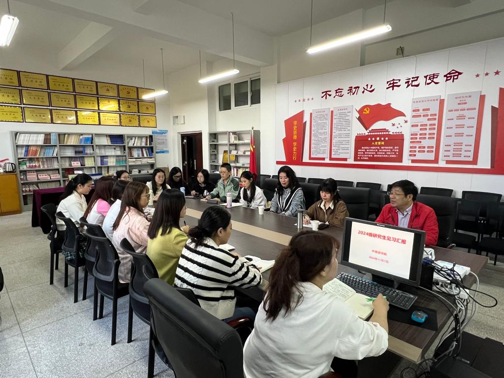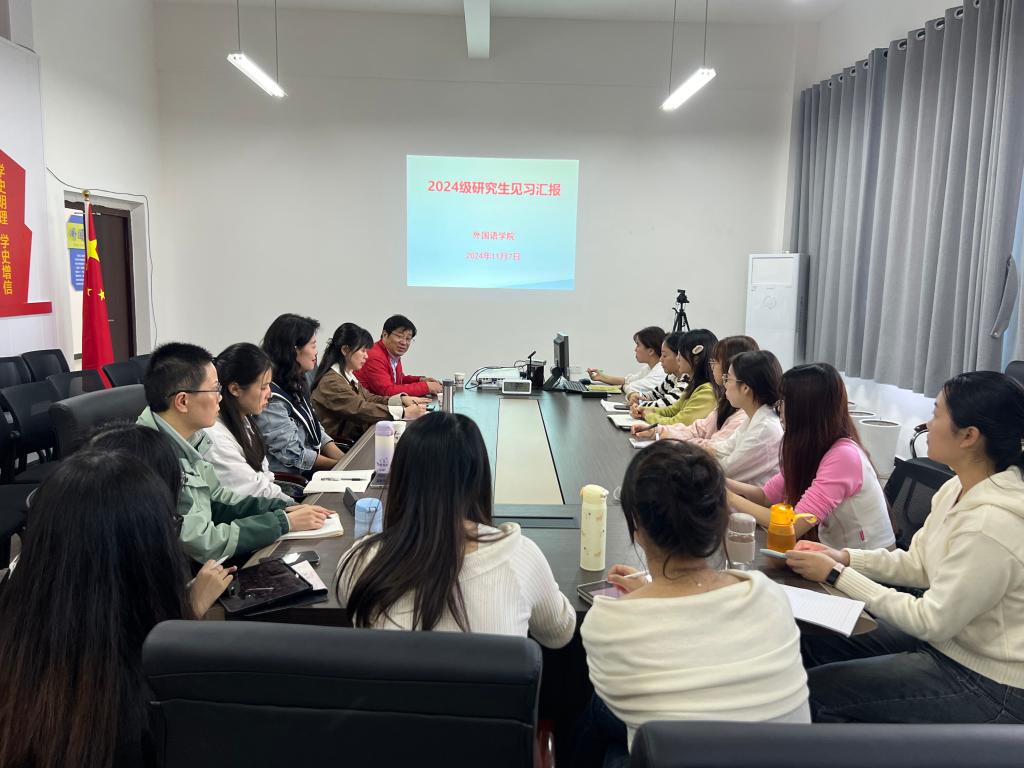 2024 年 11 月 7 日15:30,公司2024级学科教学(英语)研究生在博学楼 3 栋 315 开展了见习汇报。公司党总支书记甘长银主持分享会,研究生导师许楠、夏荥及2024级、2023级研究生参加。