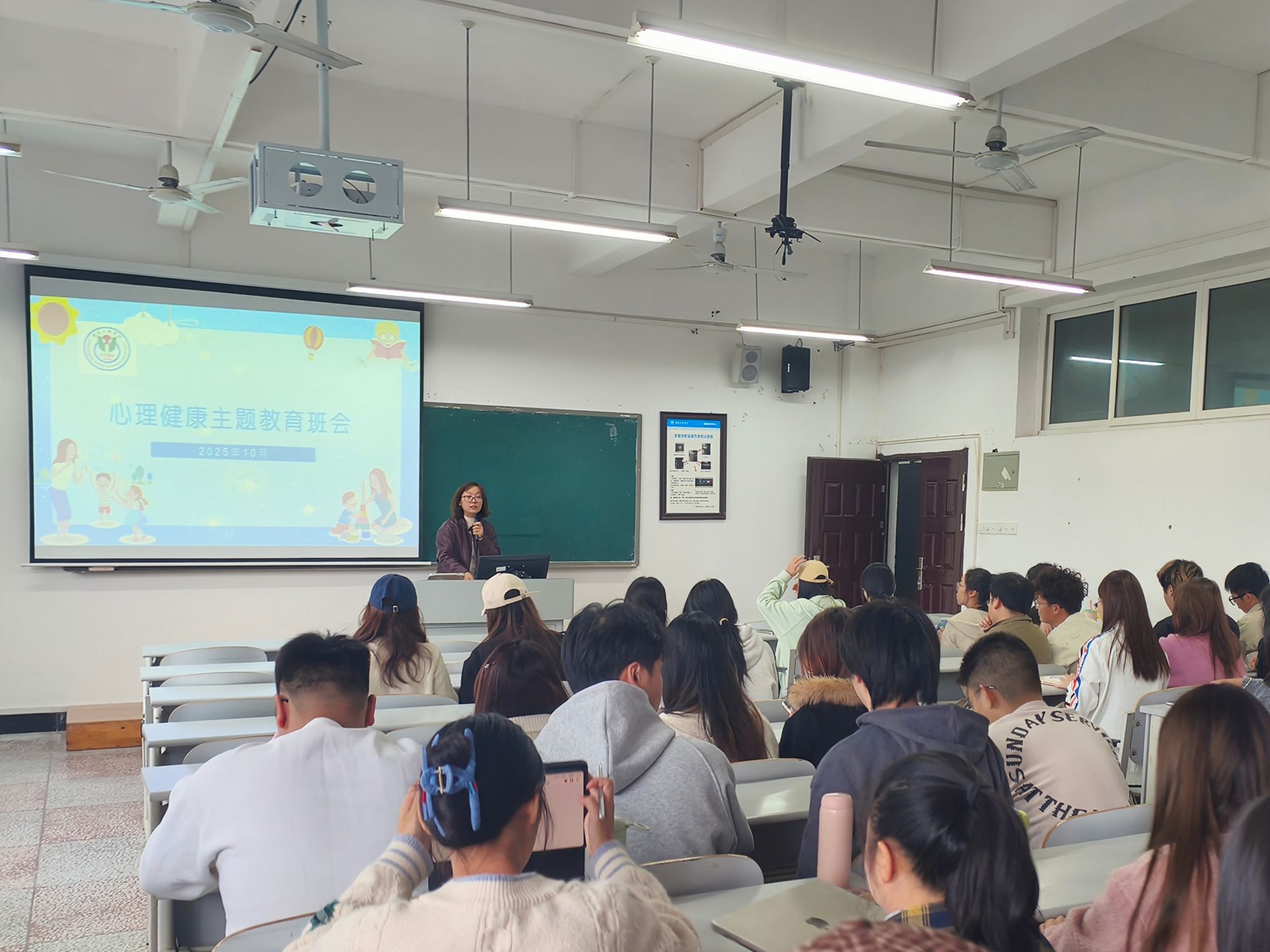 会上,杨华老师围绕研究生阶段常见的心理压力源展开系统讲解,重点分析了学业科研、人际交往与职业规划等多方面的心理调适策略,并结合实际案例,介绍了情绪识别与压力疏导的实用技巧。她指出,心理健康是员工成长成才的重要基础,鼓励同学们积极关注自身心理状态,提升自我关怀能力,在遇到困惑时主动向老师和同学寻求帮助。