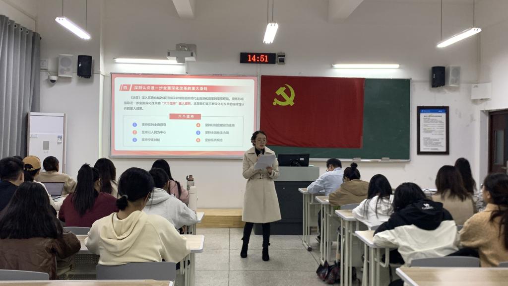 随后,第一支党支部书记向明霞围绕《中共中央关于进一步全面深化改革推进中国式现代化的决定》的内容,从起草背景、主要内容和重要意义进行解读。她要求所有员工党员要深入学习《决定》的相关内容,将自己的专业所学与国家重大发展结合起来。