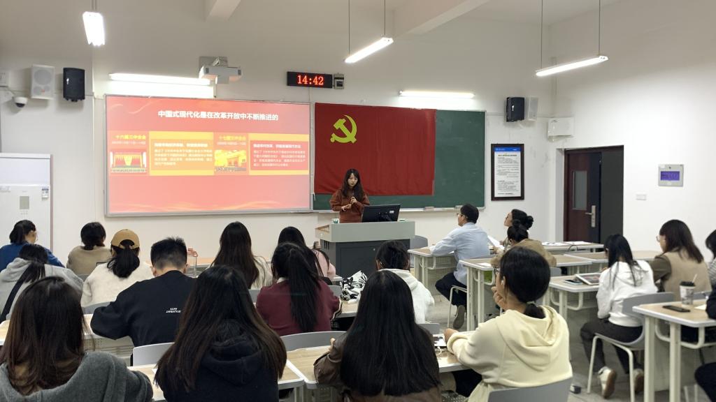 首先,第三党支部书记张雪围绕中国共产党历次全国代表大会的核心内容和历史意义展开讲解,并着重强调: 党的历史上的重要会议既是中国共产党人的一部光荣奋斗史,也是经历艰难曲折后的伟大觉醒史,对我们进一步把握历史发展规律和发展趋势,始终掌握党和国家事业发展的历史主动具有重要启迪。