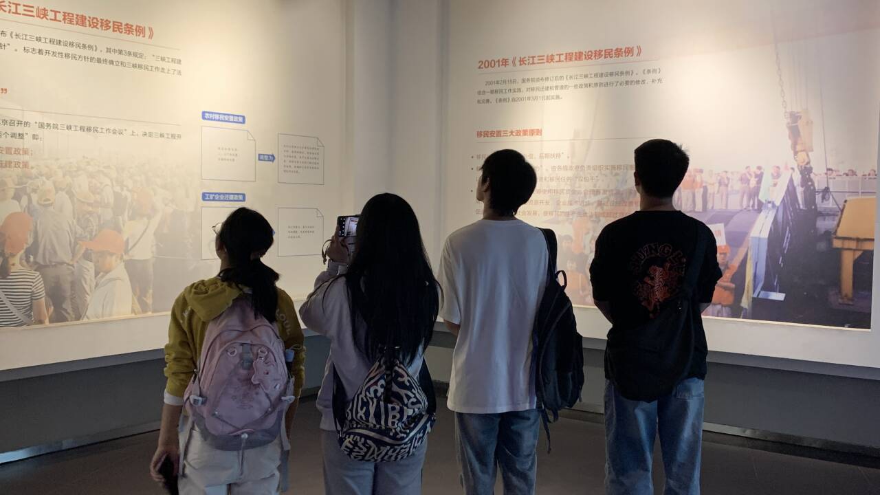 在讲解员的引导下,师生们依次参观“伟大壮举”、 “辉煌历程”、 “精神丰碑”三大主题展区。通过历史照片、实物陈列、多媒体互动等形式,全面了解三峡工程建设过程中百万移民“舍小家为大家”的感人故事。