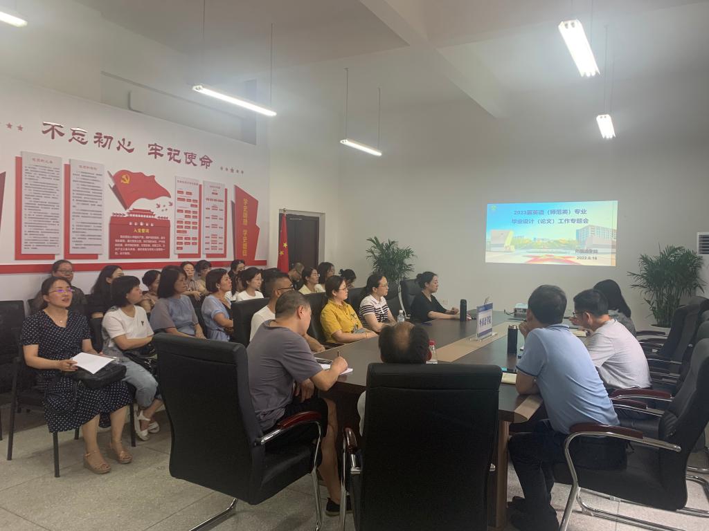 2022年6月16日下午16:00,公司院在博学楼3栋315召开了2023届英语(师范类)专业毕业设计(论文)专题会。全体英语(师范类)毕业设计指导教师参加了此次会议。