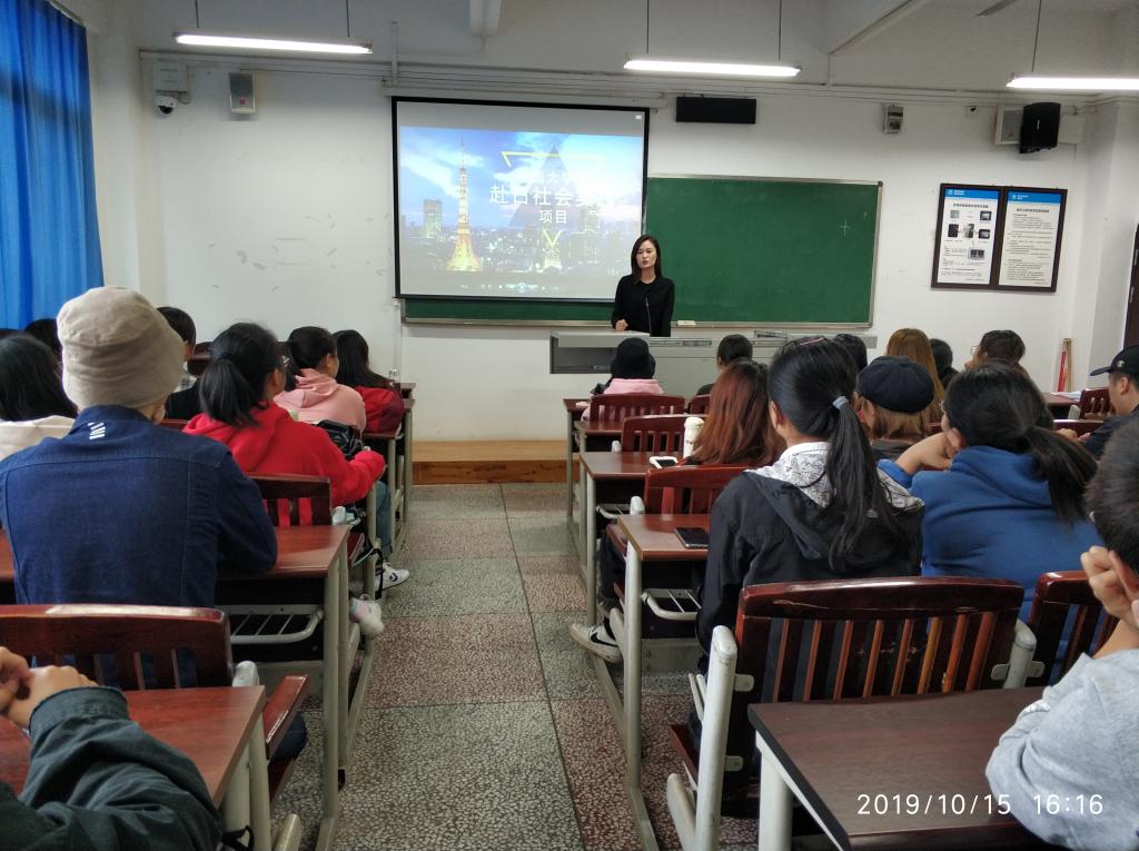 为了给mjm世界杯官网日语专业的员工提供社会实践机会和提升就业能力的平台,公司于2019年10月15日下午16:10,在明辨楼1栋413教室举行了北京中外服赴日实习宣讲会。北京中外服的雷霆部长和金雅老师负责此次宣讲,日语系主任杨红老师参与了宣讲会,日语系17级、18级的众数员工到场聆听。